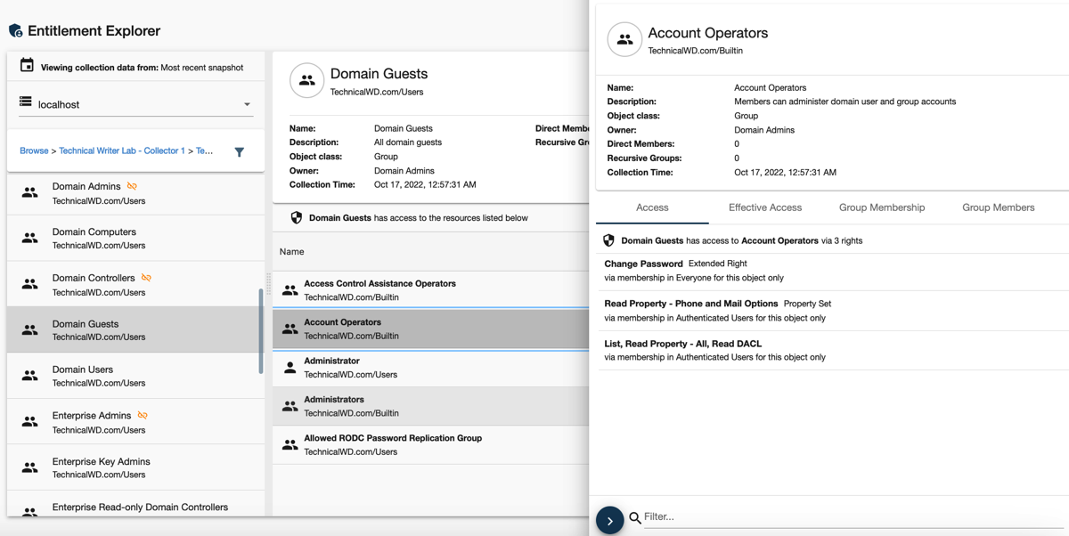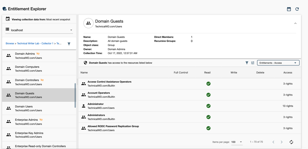 To learn more about the exact rights and group membership that resulted in granting access to a particular resource, select this resource to expand details.