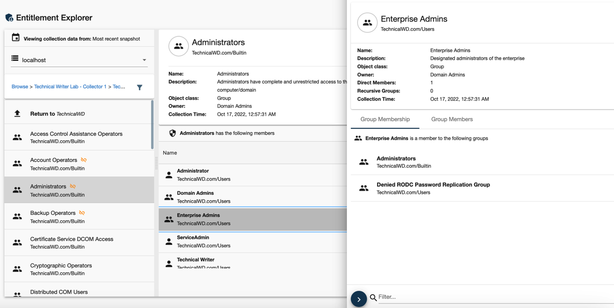 Leverage the Group Members view to see the list of members of a particular group. For example, check who was ever a member of administrative groups such as Enterprise Admins or Domain Admins. Export the member list and save it as a PDF report for external auditors.